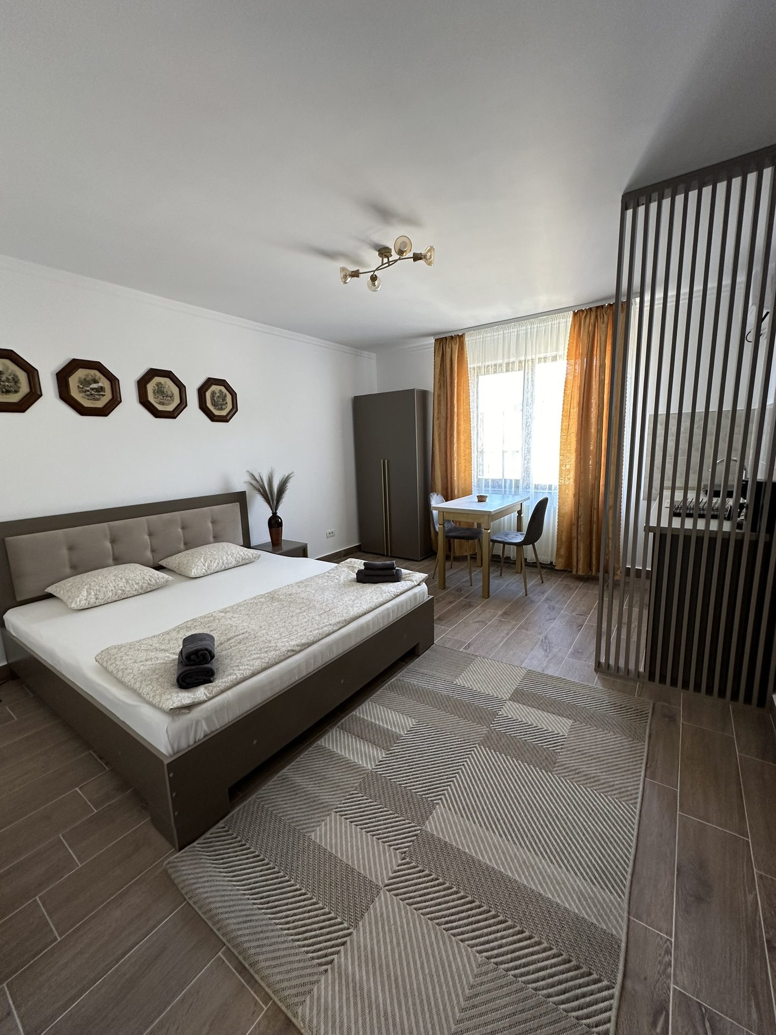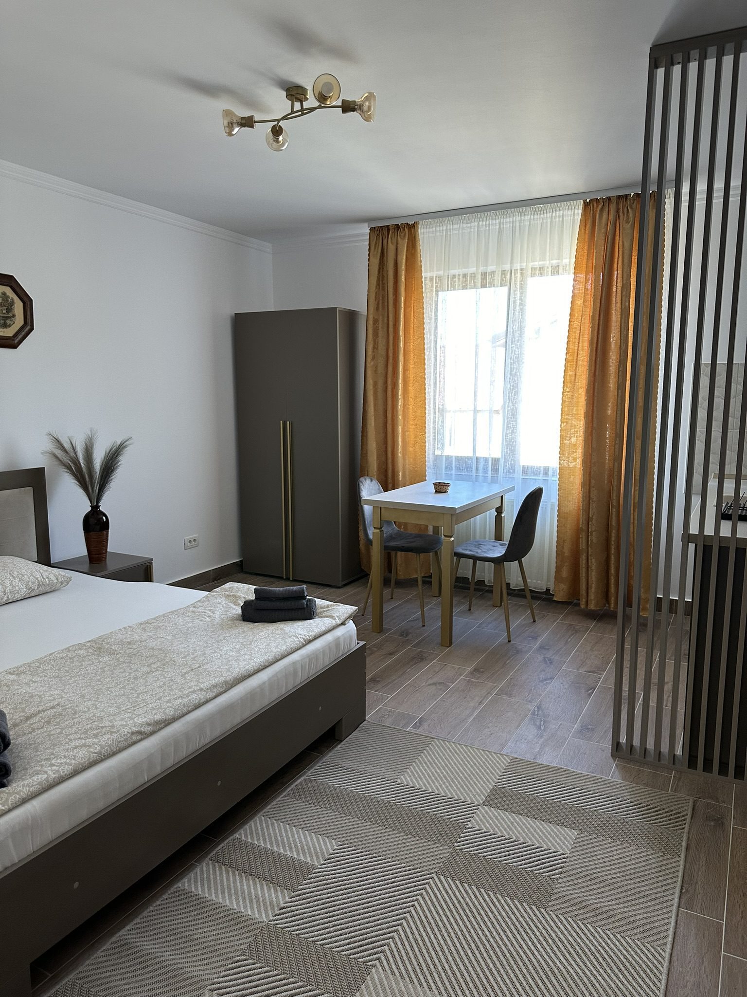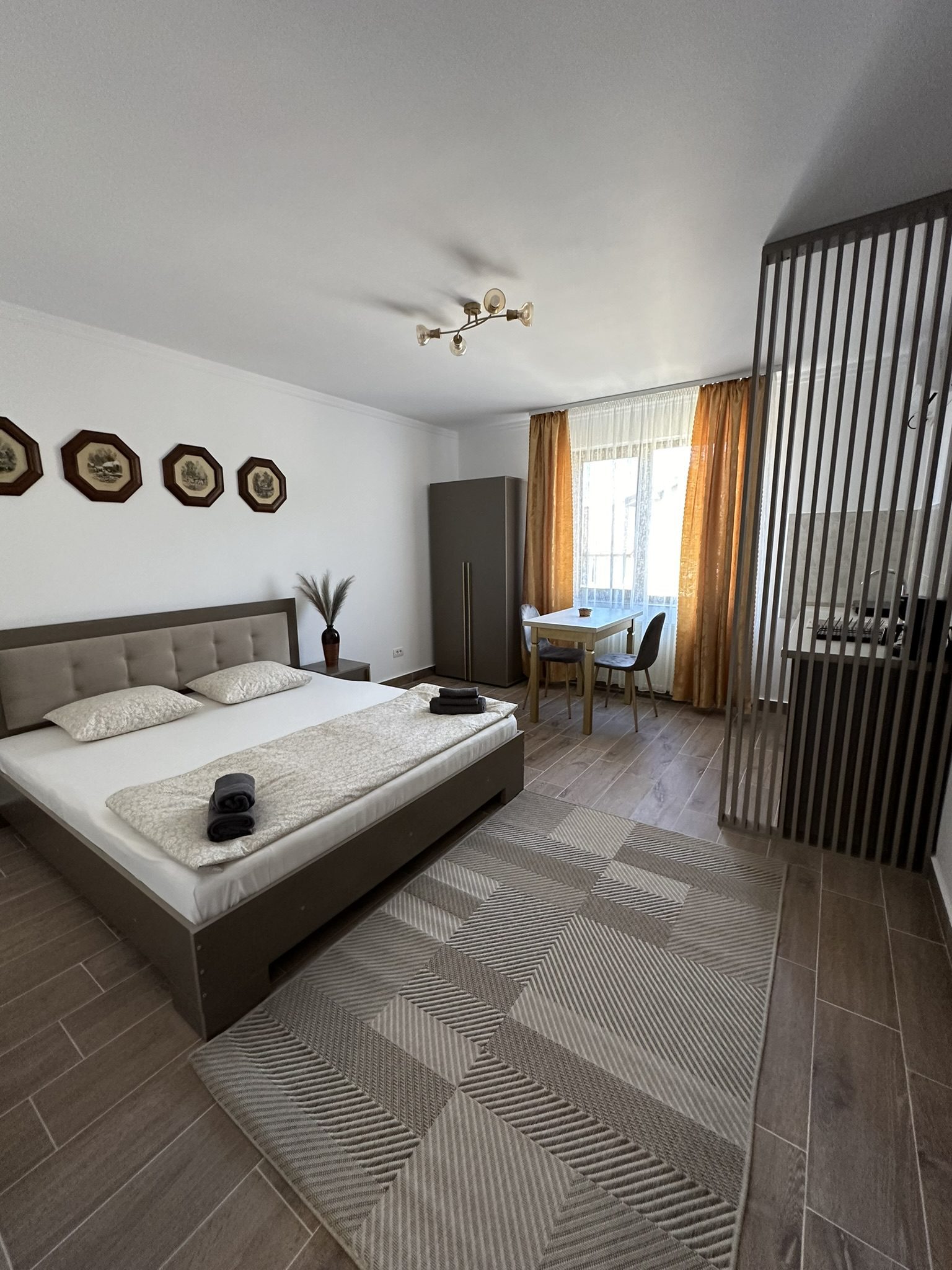 Garsoniera este spatioasa, combinand intr-un mod placut spatiul de dormit cu zona de zi. Iata cum este structurat apartamentul: